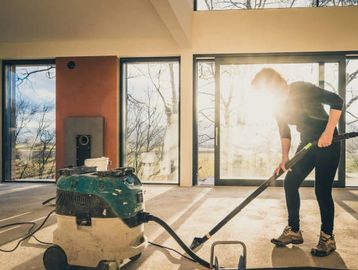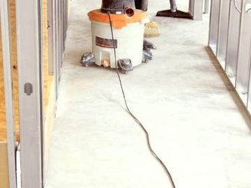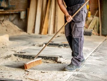 1) Rough Cleaning: Debris Removal: Focus on removing all large debris, such as wood scraps, metal pieces, drywall, and packing materials.